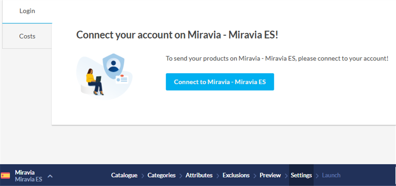 1) Dans Lengow, dans la section "Paramètres" du canal, cliquez sur "Connectez-vous à Miravia - Miravia ES":