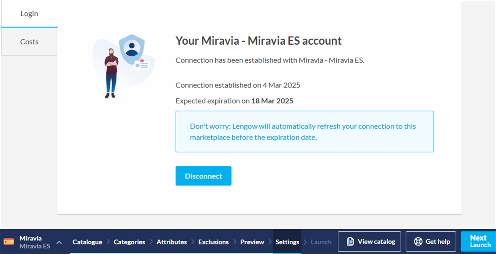 Lorsque le jeton de rafraîchissement expire (après 712 jours), vous devez réautoriser la connexion entre Lengow et Miravia.