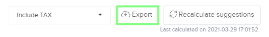 Une fois que vous l'avez fait, vous pouvez télécharger les suggestions via CSV ou API depuis la page Suggestions de Prix afin d'appliquer les modifications sur votre plateforme de magasin.