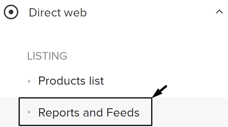 Vous pouvez trouver les flux dans Web Direct > Listing > Rapports et Flux.