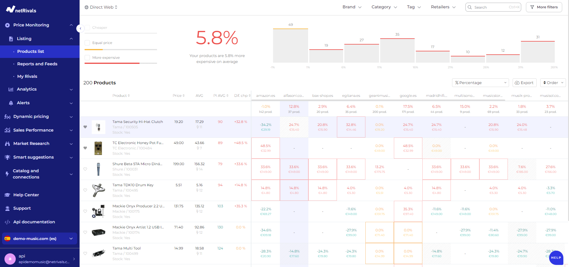 Si la configuration de votre compte est uniquement préparée pour un seul pays, vous serez directement dirigé vers Direct Web > Listing > Liste de produits.