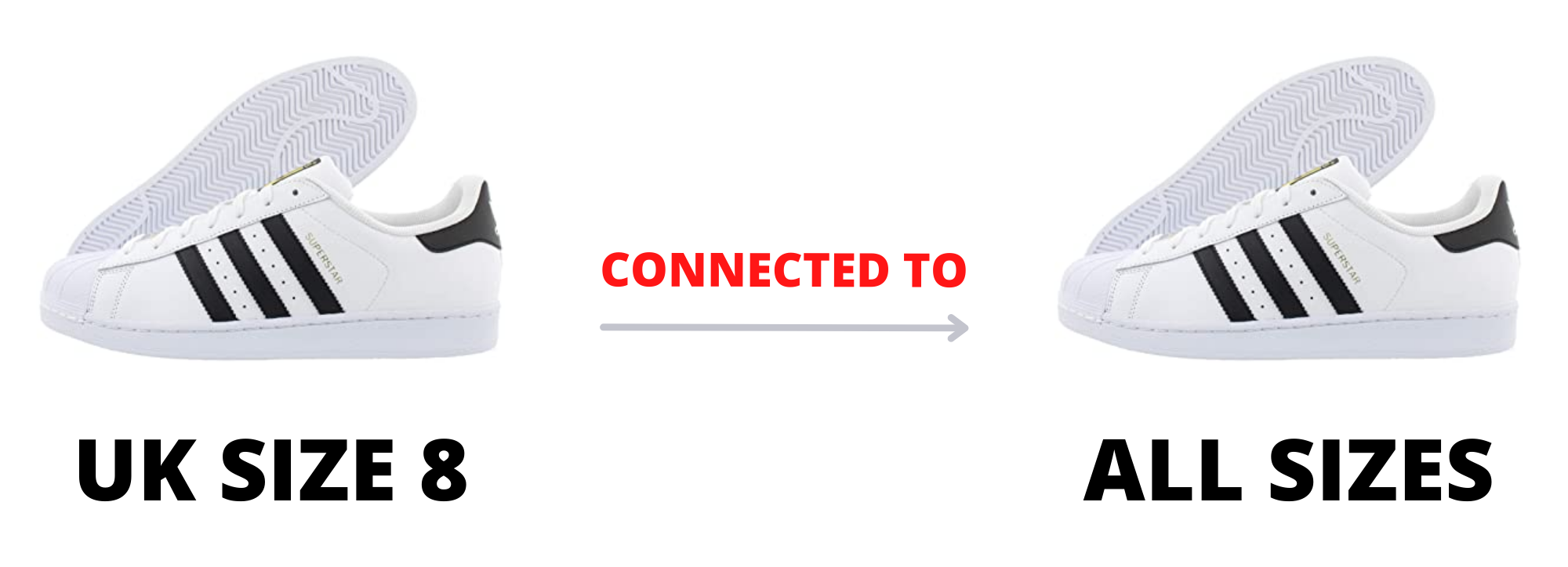 Par exemple, concernant les tailles d'une paire de baskets. Vous ne pourrez pas les connecter différenciées par taille. De plus, si une taille est disponible, nous montrerons que le produit est en stock, même si une autre taille est en rupture de stock. Nous indiquons que le produit est en rupture de stock lorsque toutes les tailles sont épuisées.