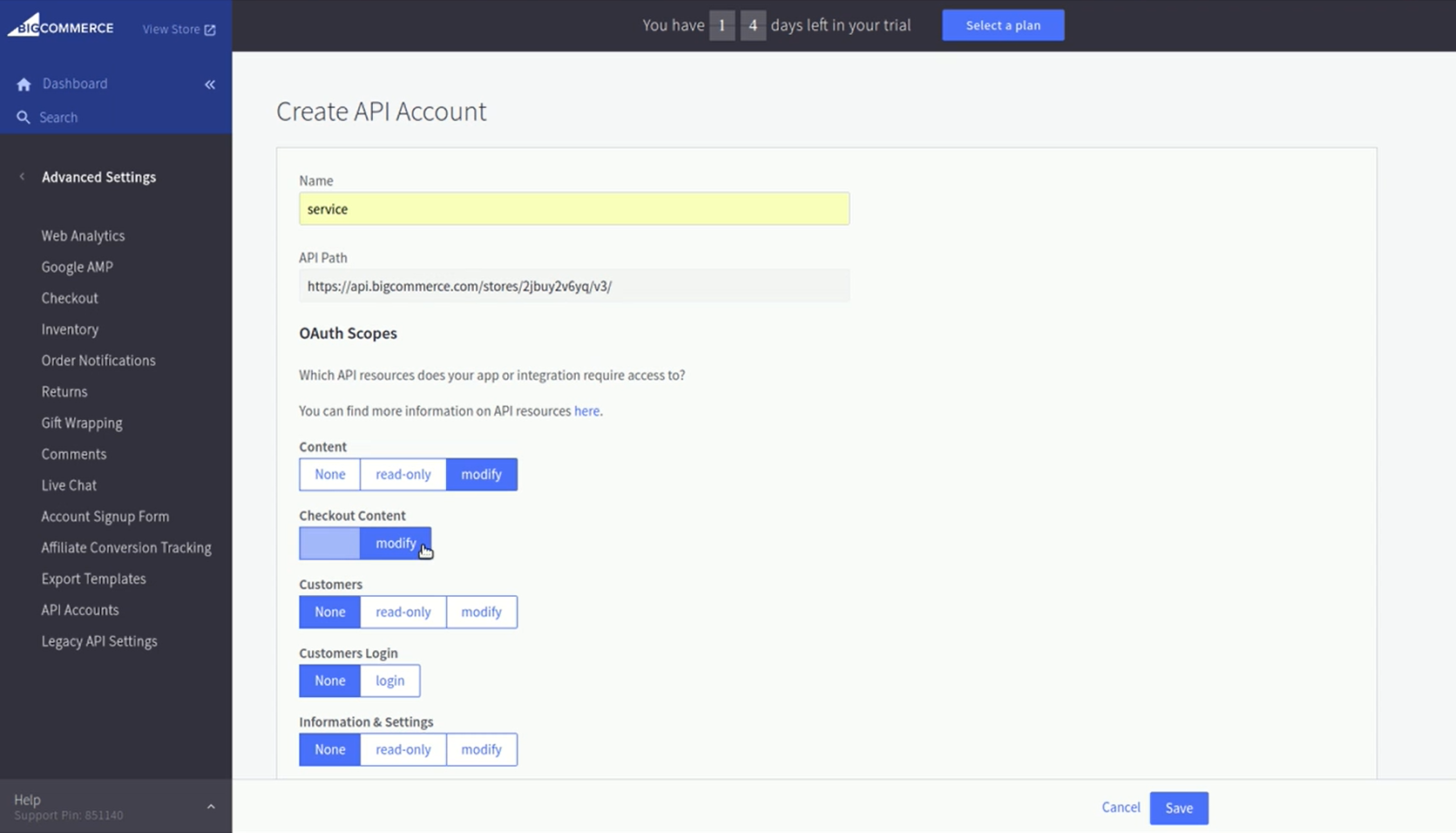2. Nommez le compte API.