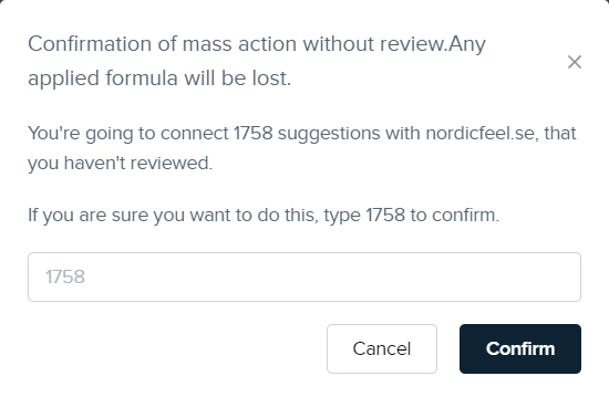 - Si la plupart des correspondances suggérées sont précises, nous pouvons les laisser pré-connectées et simplement sélectionner les produits que nous ne voulons pas connecter et les écarter en cliquant sur le bouton croix.