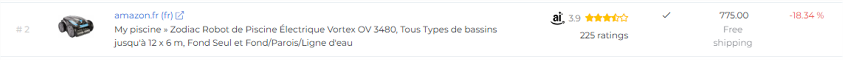 Pour Amazon uniquement : L'icône "ai" indique qu'un résumé des avis AI d'Amazon est disponible. -