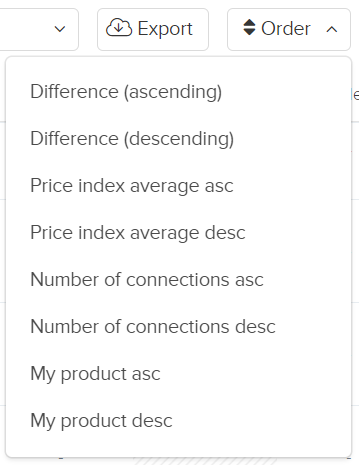 | Vous pouvez également changer l'ordre utilisé dans la visualisation des produits en cliquant sur l'une des options/critères disponibles dans le bouton déroulant Ordre . |