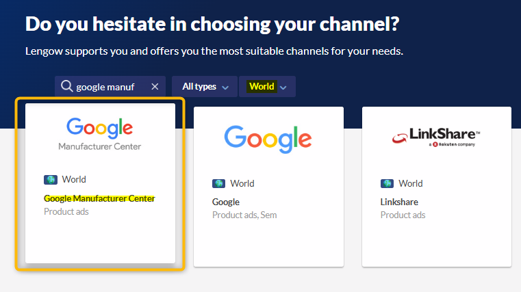 Ensuite, dans votre compte Lengow, ajoutez le canal Google Manufacturer Center.Â