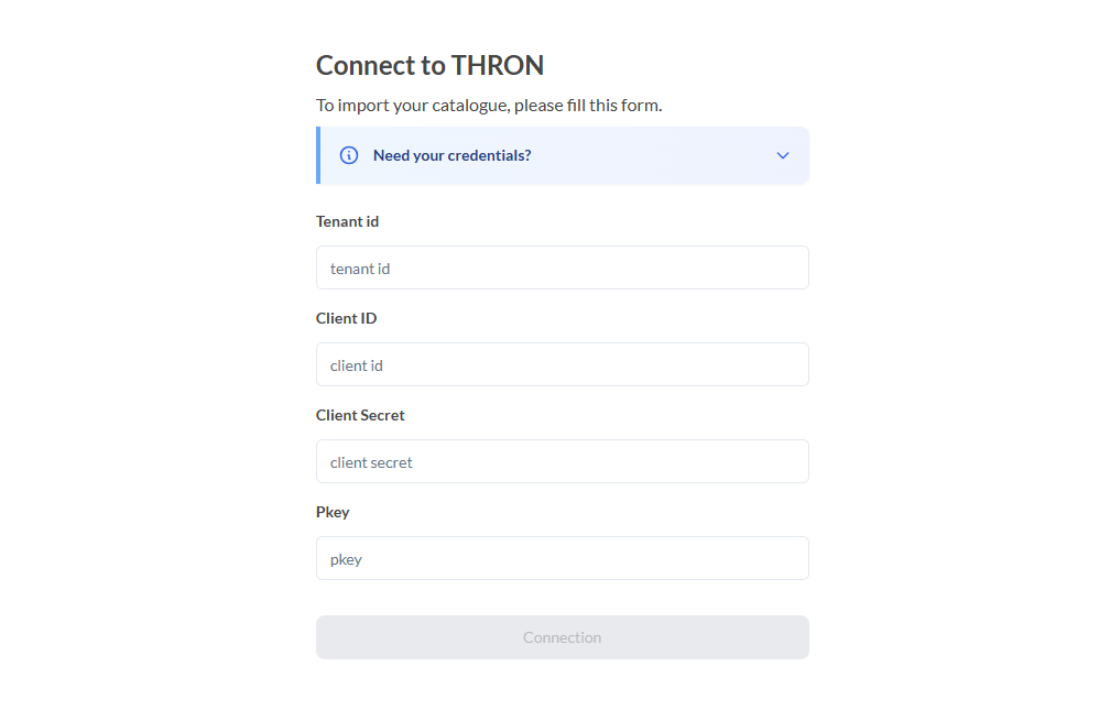 Pour obtenir vos identifiants, contactez le support THRON à support@thron.com.