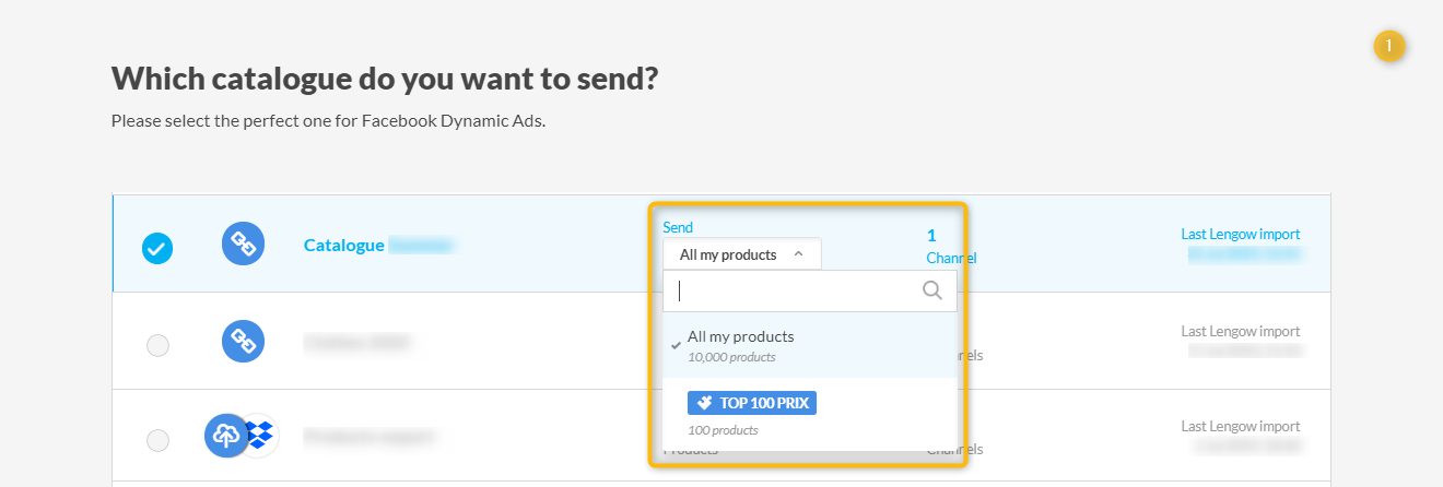 - Paramétrer et envoyer seulement une sélection de produits sur un nouveau canal (avant de publier plus largement le catalogue)
