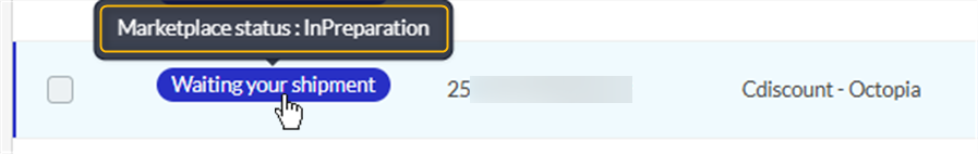 • Visualiser le statut de la commande côté marketplace en passant votre souris sur son statut Lengow :