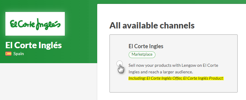 Lorsque vous ajoutez un canal "El Corte Inglés" dans votre compte Lengow, vous avez le choix entre un flux produits et un flux offres :