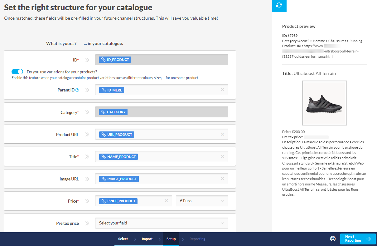 La correspondance des champs principaux s'effectue une fois seulement lors de l'import d'un nouveau catalogue.