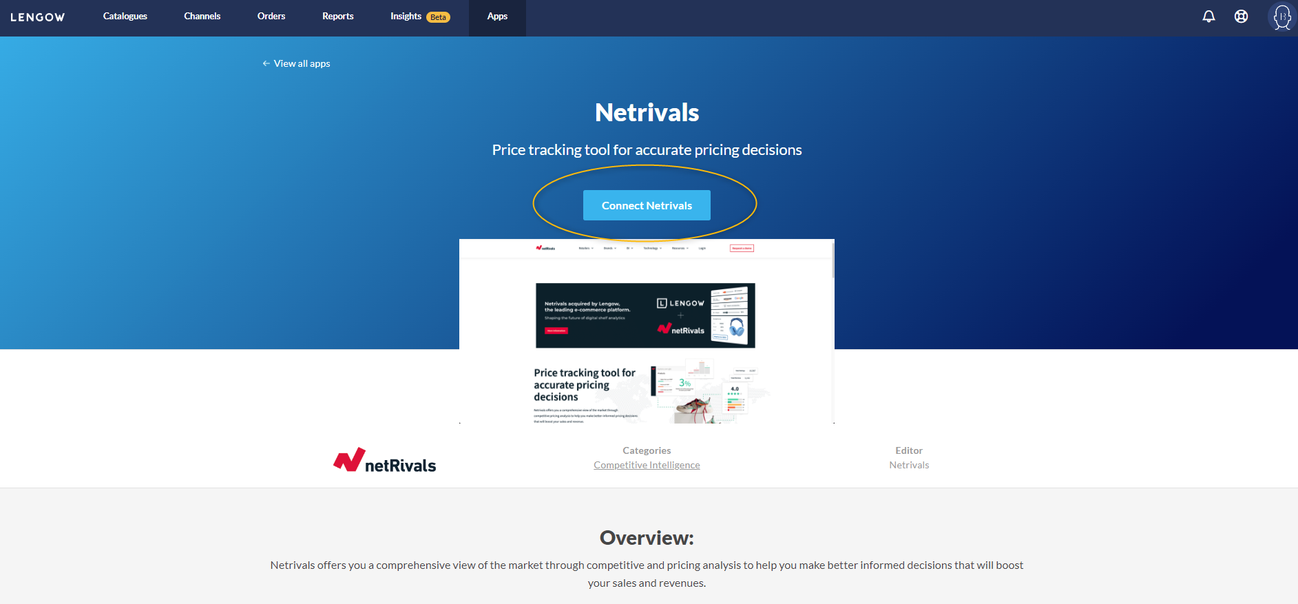 Pour utiliser cette app, vous devez connecter votre compte Netrivals à Lengow.