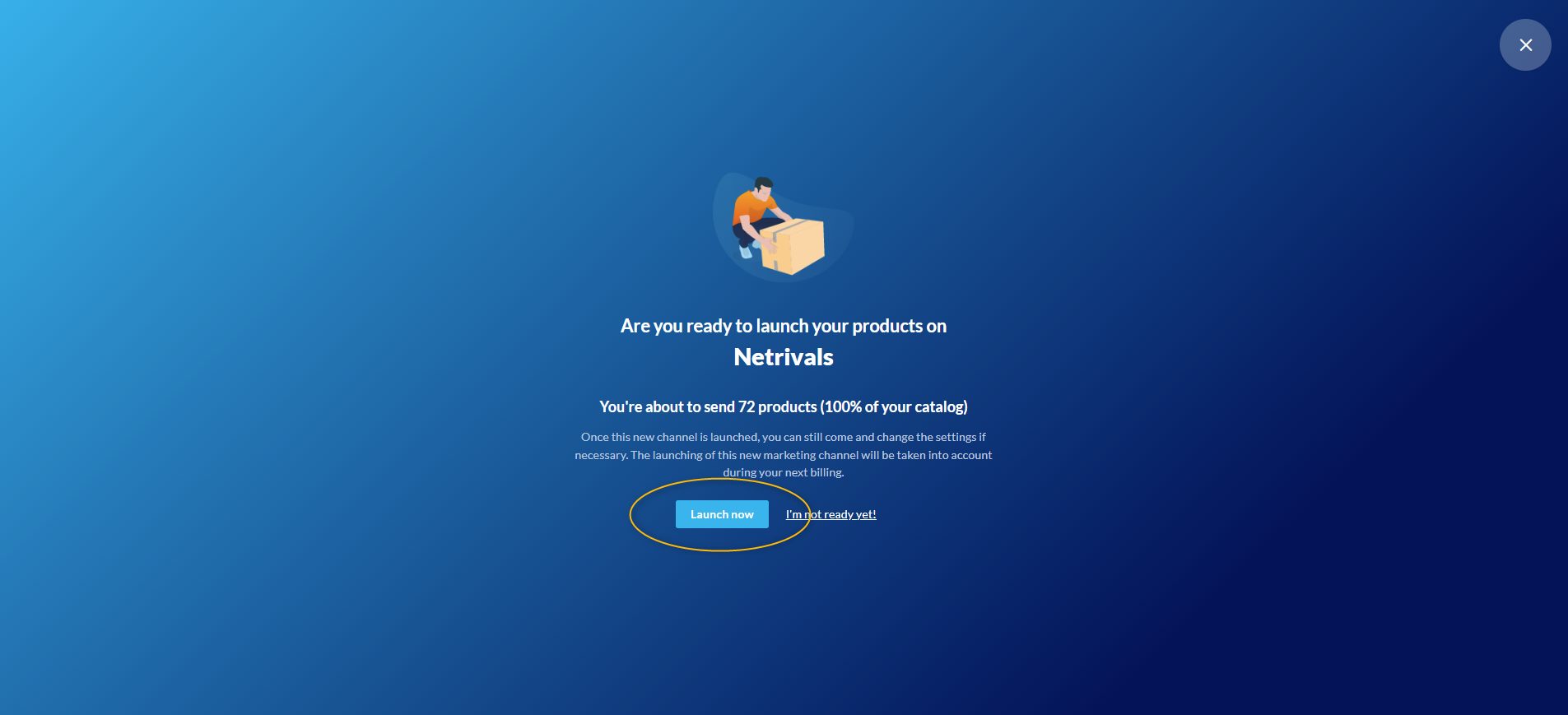 Vous êtes maintenant prêt à diffuser votre catalogue sur Netrivals ! Cliquez sur "Diffuser maintenant".
