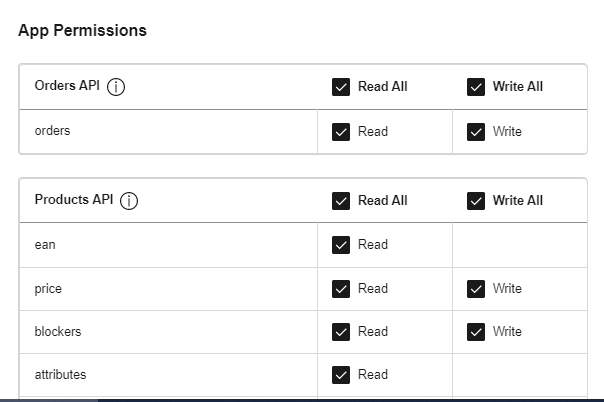 Afin de vous assurer que Lengow puisse récupérer vos commandes et mettre à jour vos données, définissez les "App Permissions" dans Zdirect à "Read All" et "Write All" pour Orders API et Products API (voir capture d'écran ci-dessous)