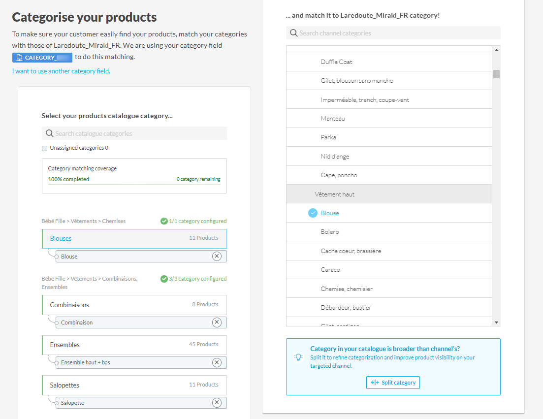 Abbina le tue categorie con le categorie di La Redoute al Abbinamento Categorie passaggio.