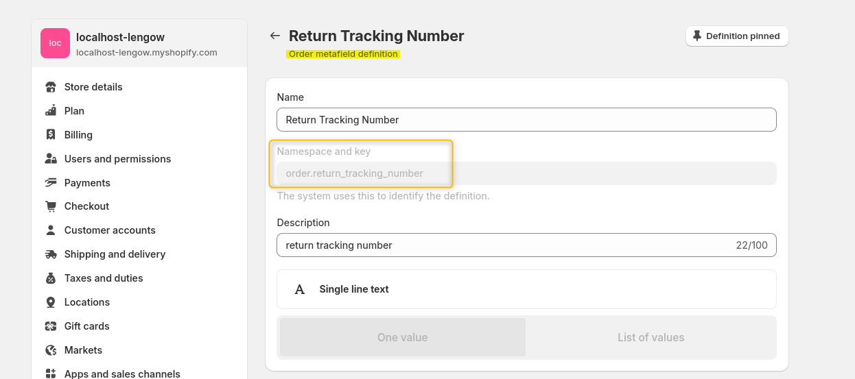 1. Aggiungi un Metafield del numero di tracciamento del reso