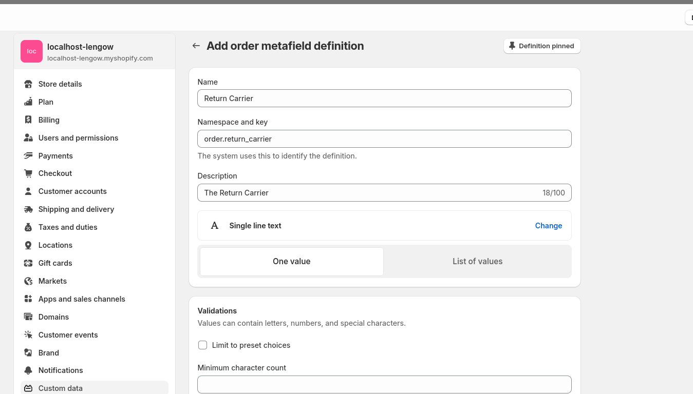 1. Aggiungi un Metafield del corriere del reso