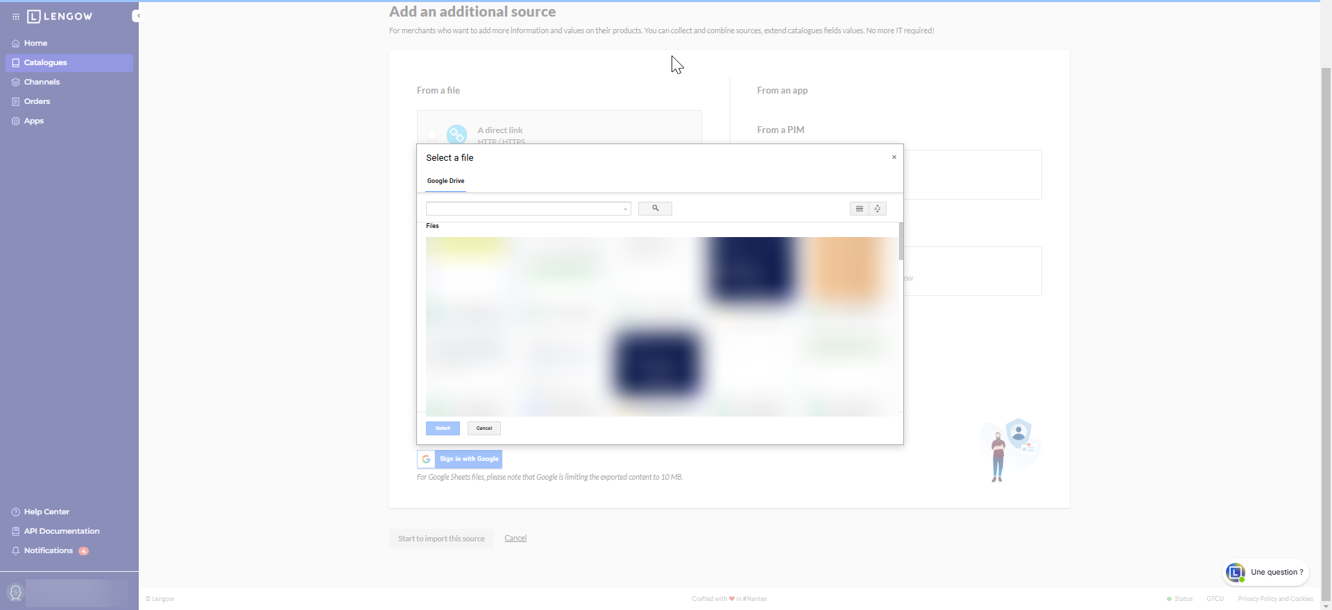 Per fare ciò, in ogni fonte, clicca su "Connetti a Google", seleziona il file e conferma la pagina fino a quando non viene confermata l'indicizzazione.