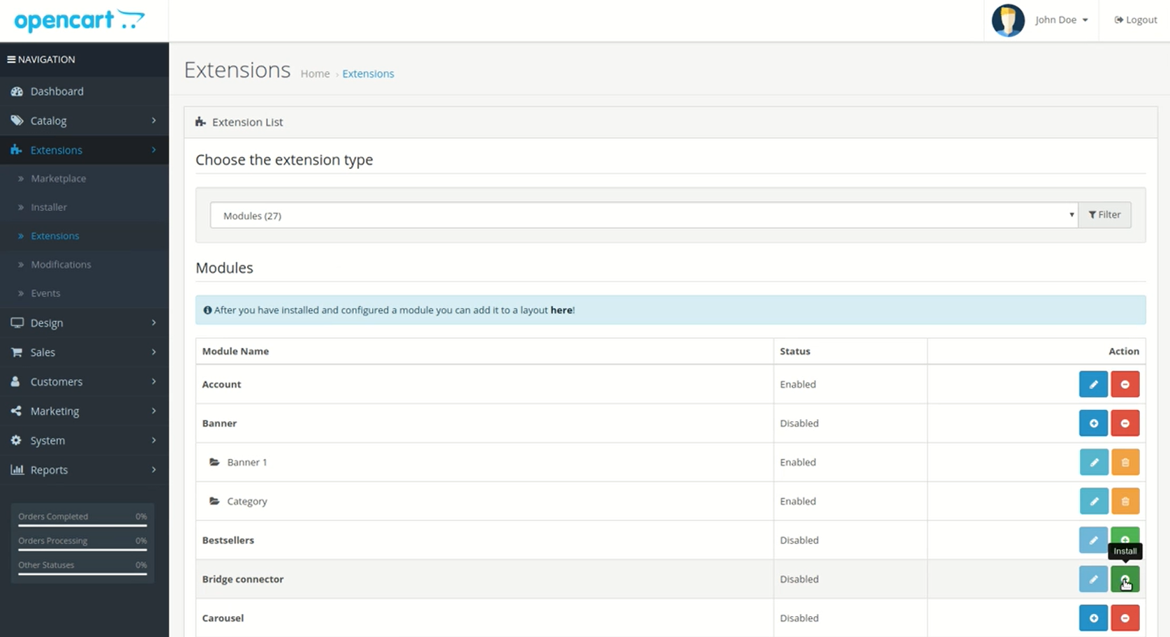 1. Dal menu a sinistra vai a Estensioni > Installatore.