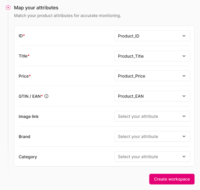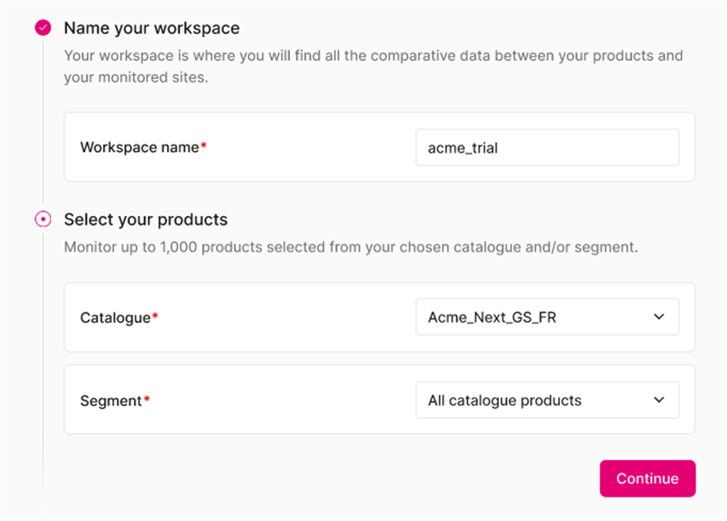 Seleziona un catalogo / segmento esistente contenente i prodotti da monitorare.