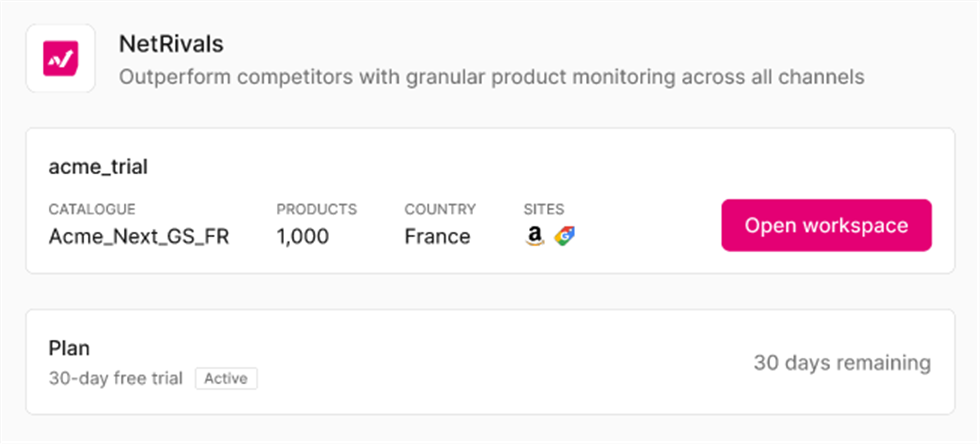 Lengow offre una prova gratuita di 30 giorni di NetRivals e NetMonitor per gli utenti esistenti di NetMarkets o NetAmplify, direttamente all'interno della piattaforma Lengow.