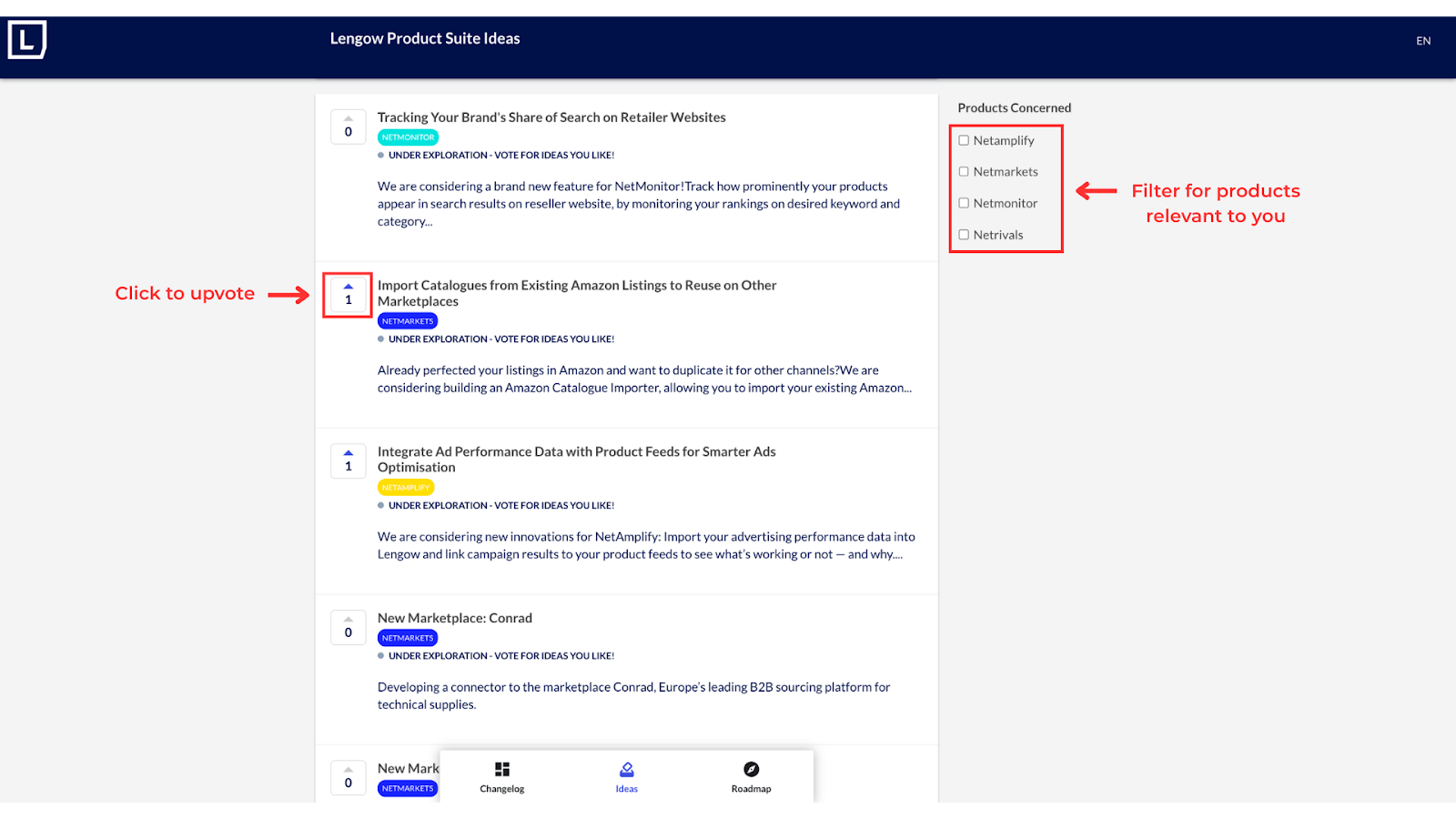 • Aiuta a plasmare il futuro di Lengow votando e commentando le idee
