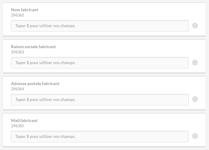 - "Mail fabricant": Email del produttore.