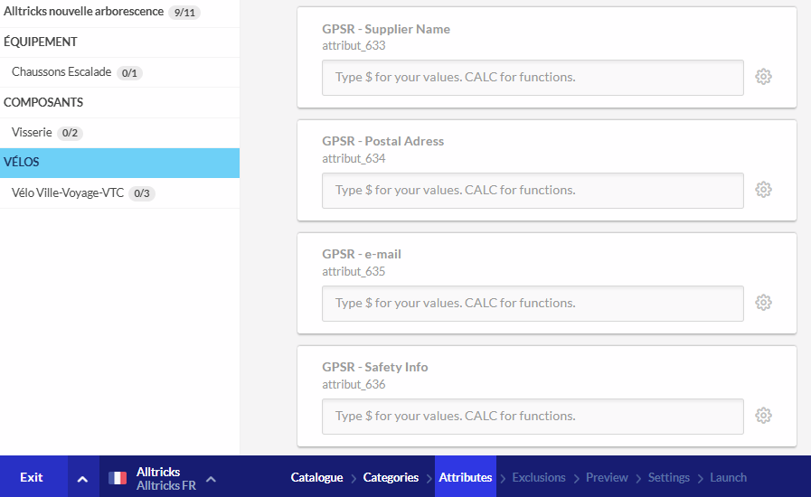 Per conformarsi al Regolamento generale sulla sicurezza dei prodotti (GPSR), devi fornire a Alltricks le seguenti informazioni sui tuoi prodotti attraverso gli attributi disponibili in Lengow, a livello di categoria: