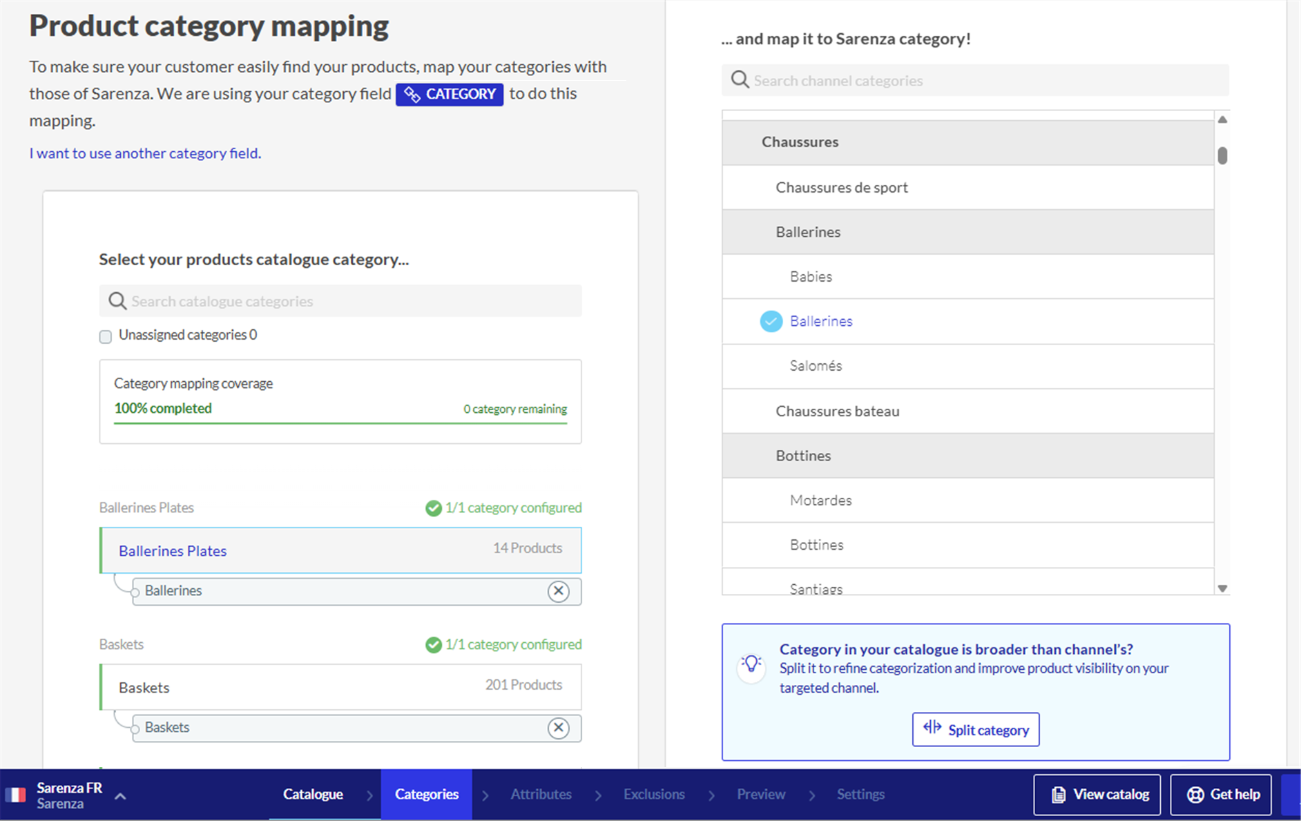 Applicable products: Netmarkets Sarenza (Mirakl) - Categorie Mappa le tue categorie con le categorie di Sarenza al passo di Mappatura delle categorie. Aggiornato 12 dicembre 2025 18:43