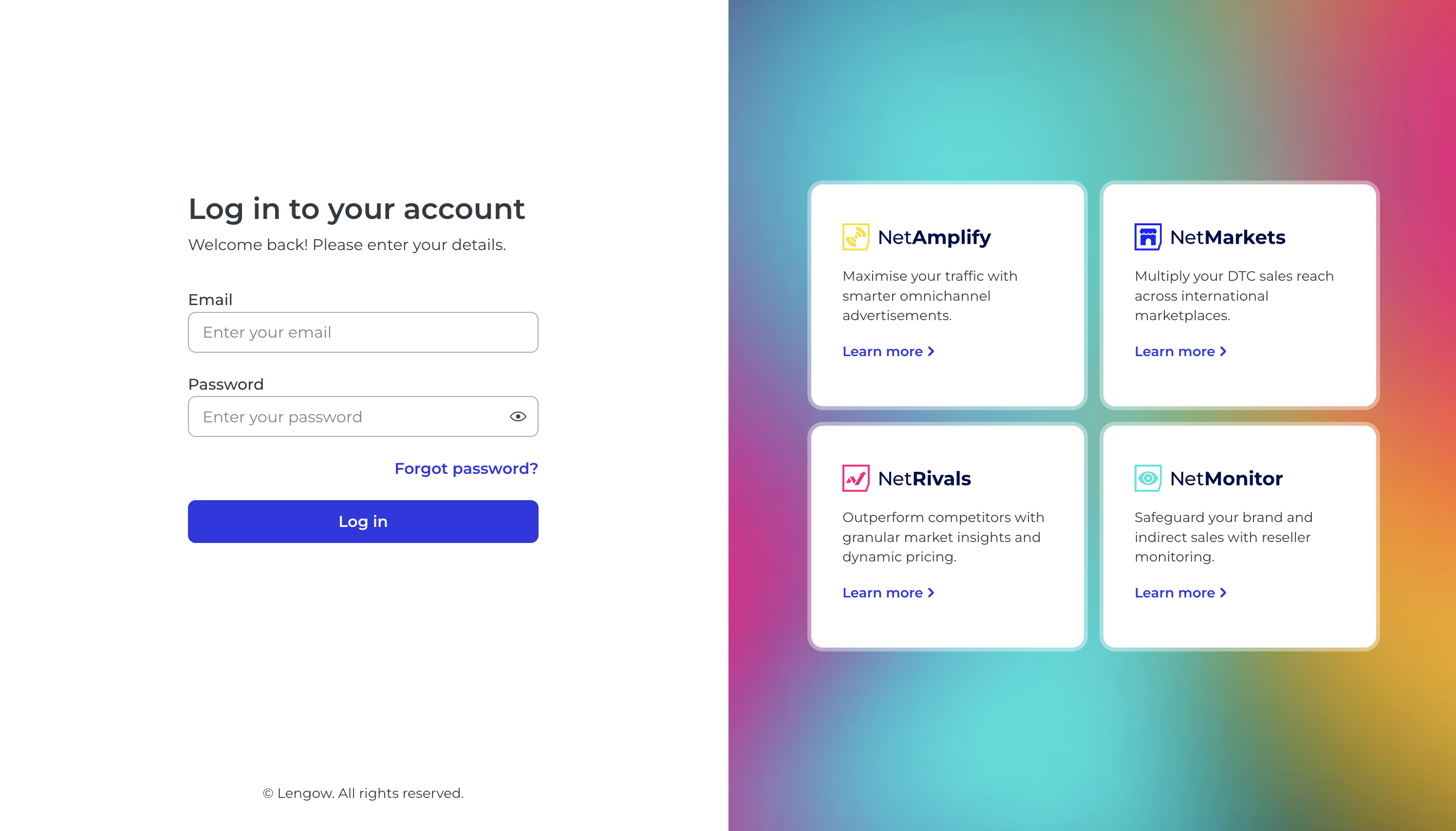 Per NetMarkets o NetAmplify, vai a https://my.lengow.io/