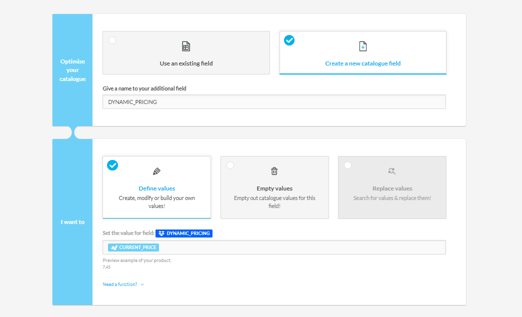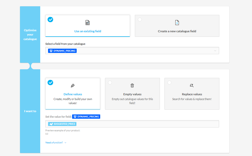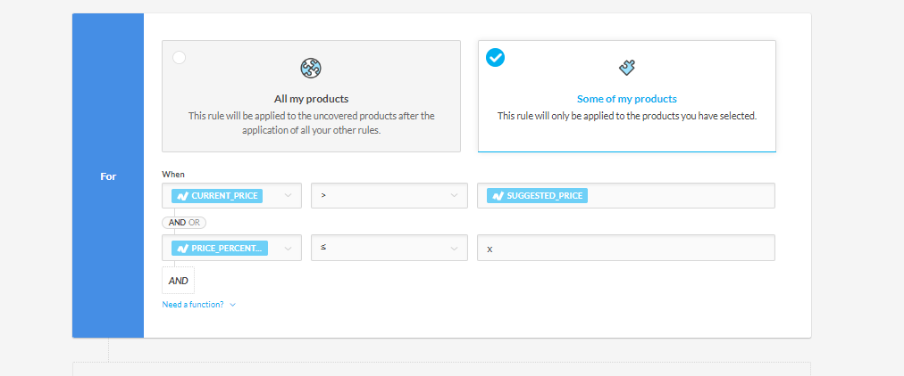Impostando ottimizzazioni utilizzando le due seguenti regole ti permette di definire se i suggerimenti di prezzo saranno applicati ai tuoi prodotti o meno.Â