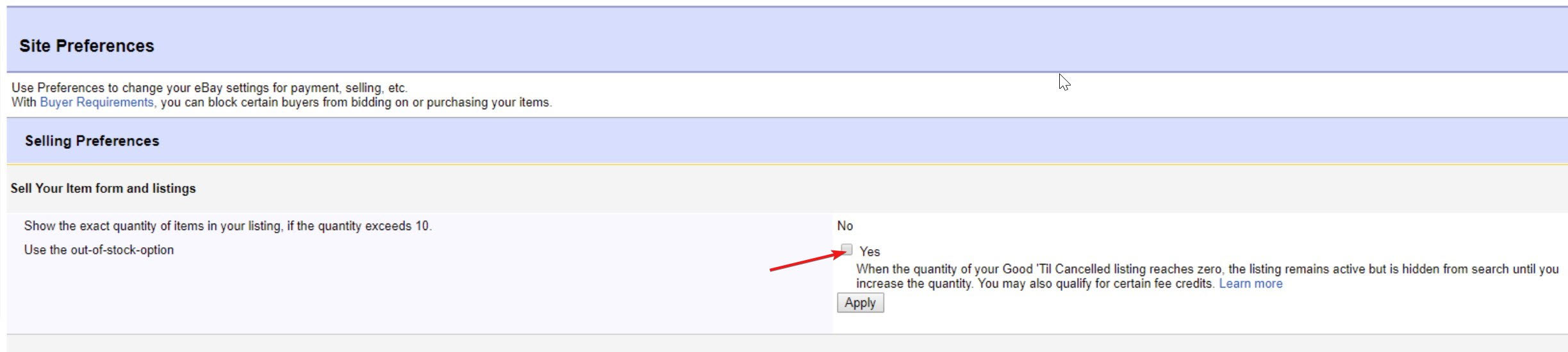 Abilita questa opzione per mantenere le tue inserzioni eBay (con la loro storia, recensioni, ecc.) quando gli articoli sono esauriti. Le inserzioni saranno nascoste dai risultati di ricerca invece di essere completamente eliminate. Leggi di più nell'aiuto di eBay