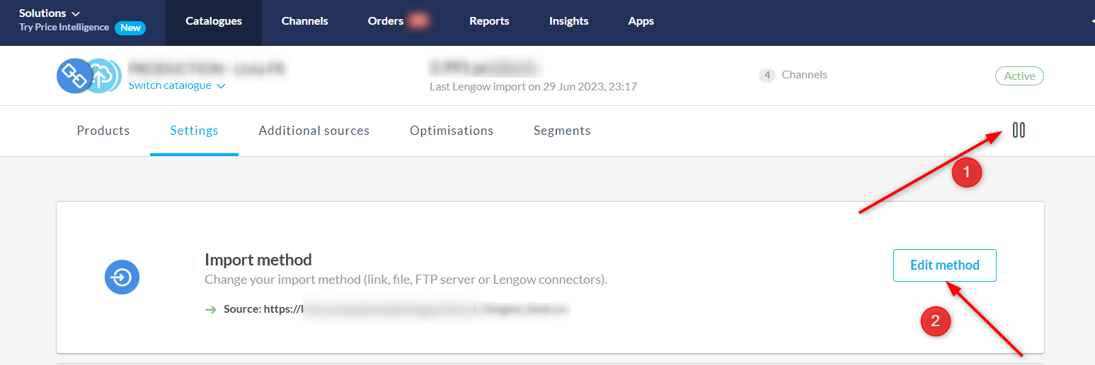 - Vai alla pagina delle impostazioni del catalogo. Disattiva il catalogo, poi clicca sul pulsante "modifica metodo" :