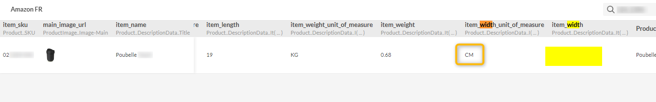 Amazon ti sta facendo sapere che stanno ricevendo un'unità di misura della larghezza (ad esempio: "CM"), ma nessun valore corrispondente per la larghezza. Questi due elementi sono reciprocamente dipendenti, il che comporta l'errore.