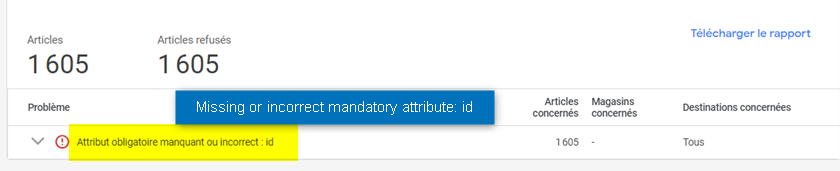 Google指出您的产品缺少字区分"id";然而,这个字区分在Lengow的Google API渠道结构中并不存在。