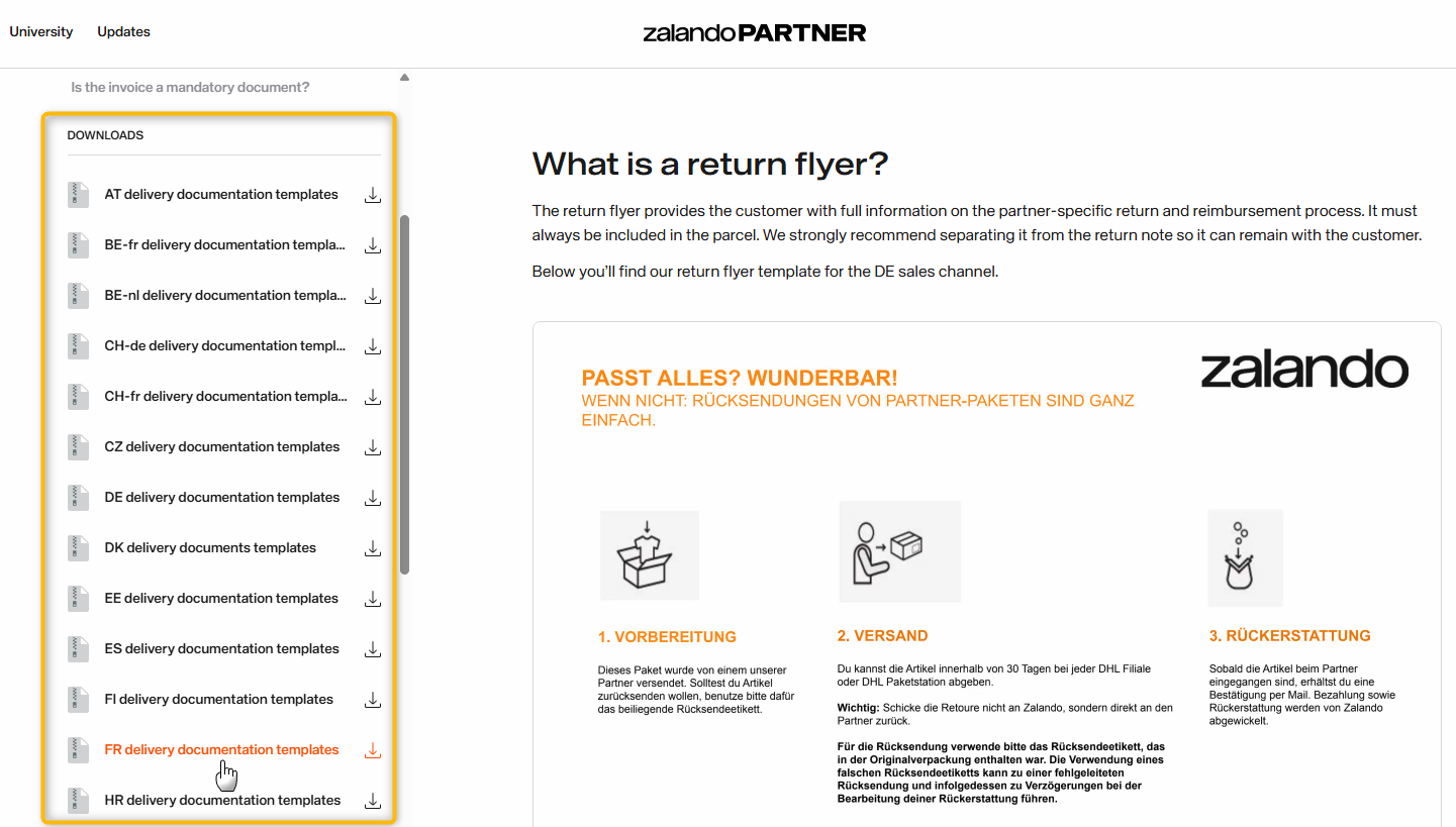 Zalando 要求在每个订单的包裹中包含特定文件: