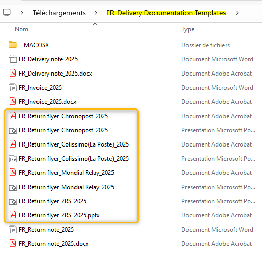 - 打开“配送文件模板”文件夹并下载对应您承运商的传单(PDF 或 PowerPoint 格式):
