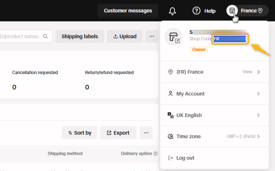 1) 从您的TikTok Shop卖家中心获取您的Shop代码