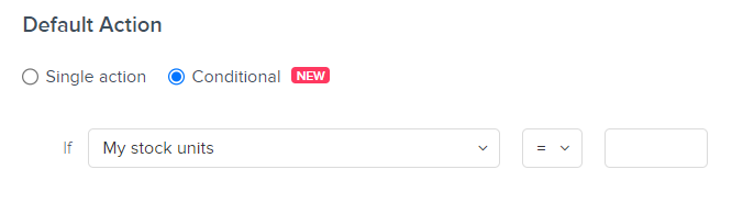 - 我的库存单位:当我的库存是(= 等于,≠ 不等于 , > 大于, >=大于或等于, < 小于或 <= 小于或等于) 到右边框中选择的数字。
