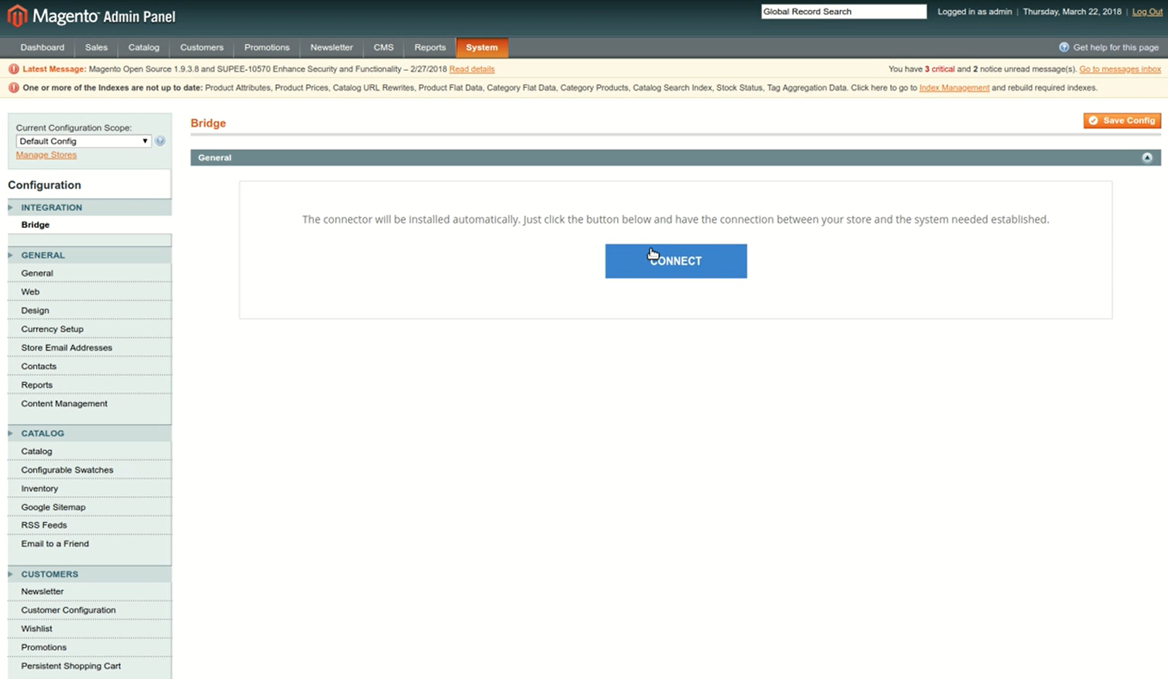Applicable products: Netmonitor, Netrivals Magento 1 查看此视频,了解如何为Magento 1安装插件:按照以下步骤学习如何安装插件:1. 从Magento管理面板开始。点击系统> Magento Connect > Magento Connect Manager。2. 点击选择文件并选择插件文件,然后点击上传。 您可以从本文末尾的附件中下载插件文件。 3. 返回Magento管理面板并打开系统选项卡,然后点击订单状态。4. 点击连接以安装插件。5. 现在您可以使用Store Key来集成数据。 更新 2025年06月30日 16:58