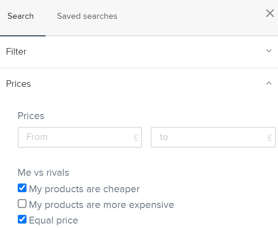 1. 通过点击屏幕右上角的‘高级’按钮并搜索产品,应用您希望的特定过滤器。 |