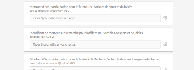 为了遵守反浪费法(AGEC),Boulanger在您的报价提要中提供了一个属性,以指示与您的产品相关联的UID。:"eco_contributions"。
