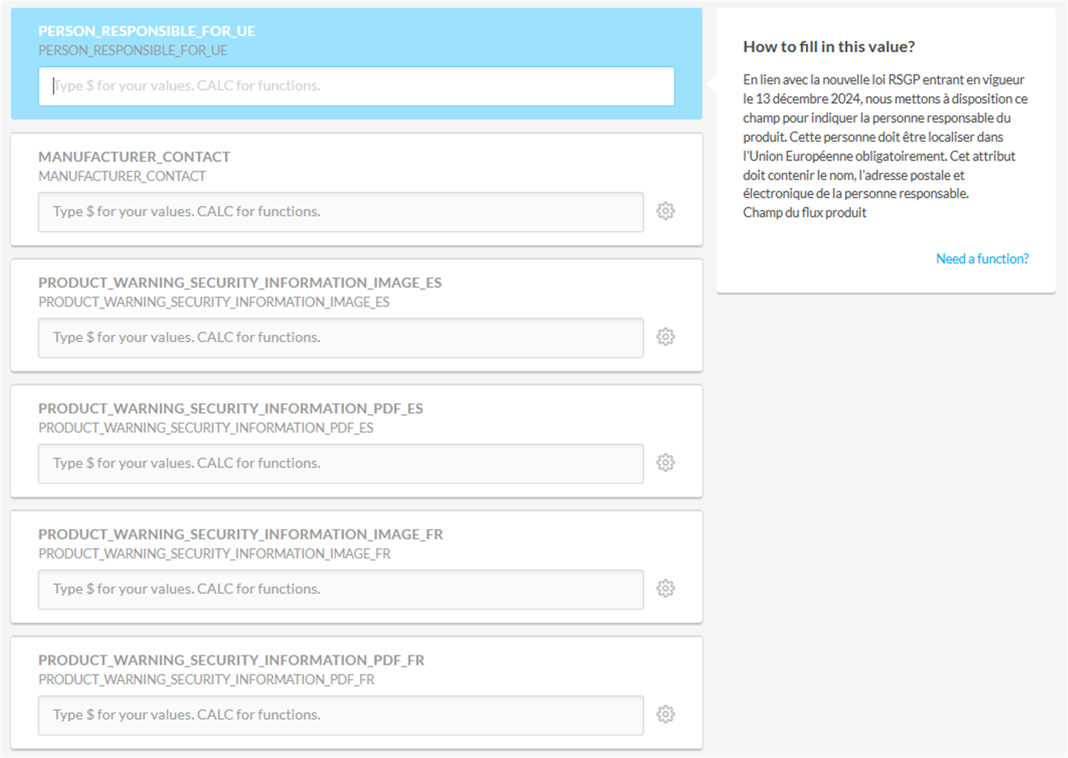 为了遵守一般产品安全法规(GPSR),您必须通过在Lengow中可用的属性向Showroomprivé提供有关您产品的以下信息: