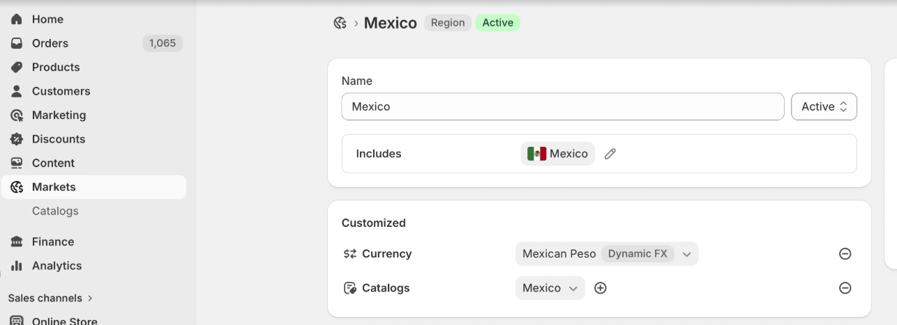 - 为每个区域定义特定货币(例如,墨西哥比索与动态FX)和本地化目录。